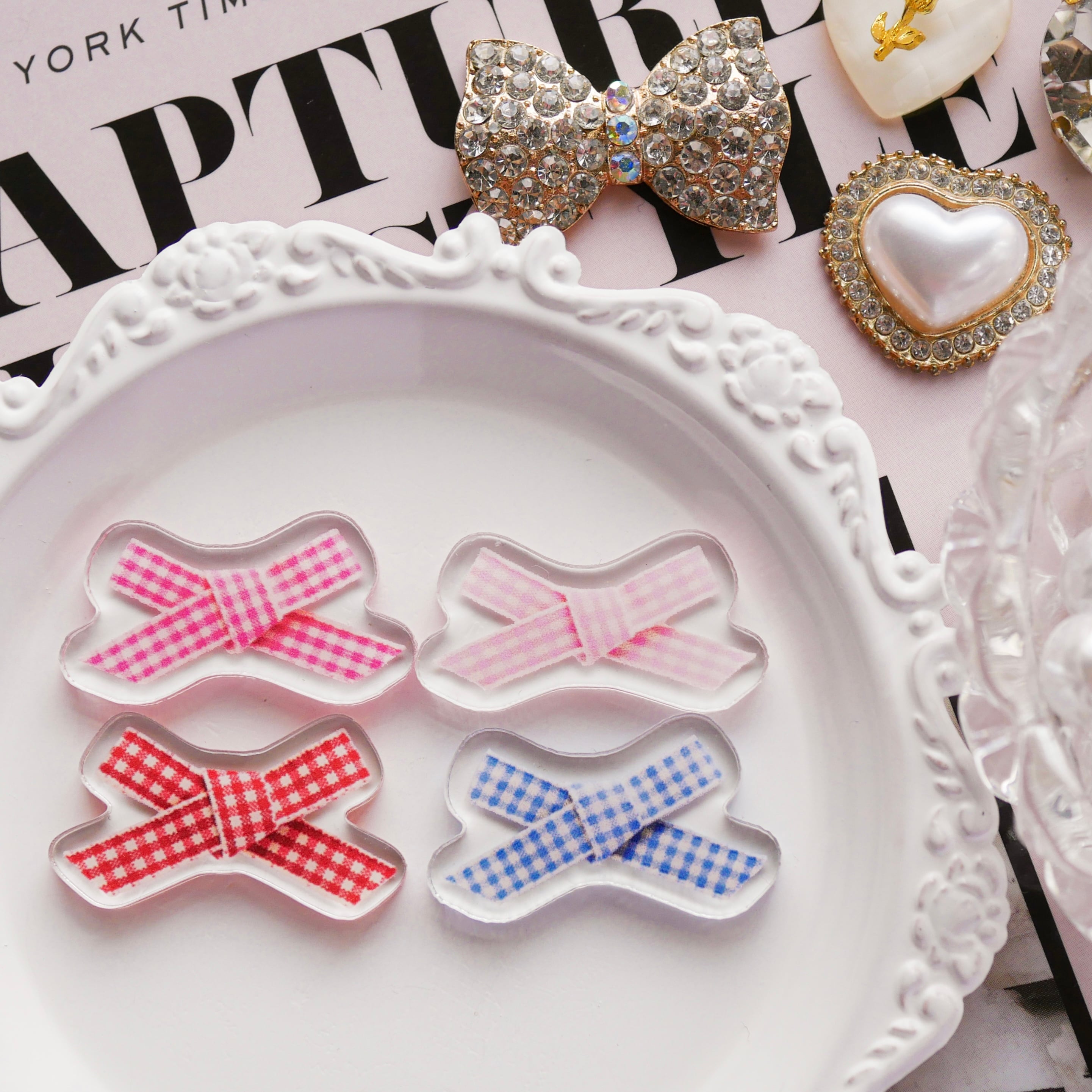 《COCONELオリジナル》30mmフリル&チェック柄リボン両面プリント・アクリルプレートカボション