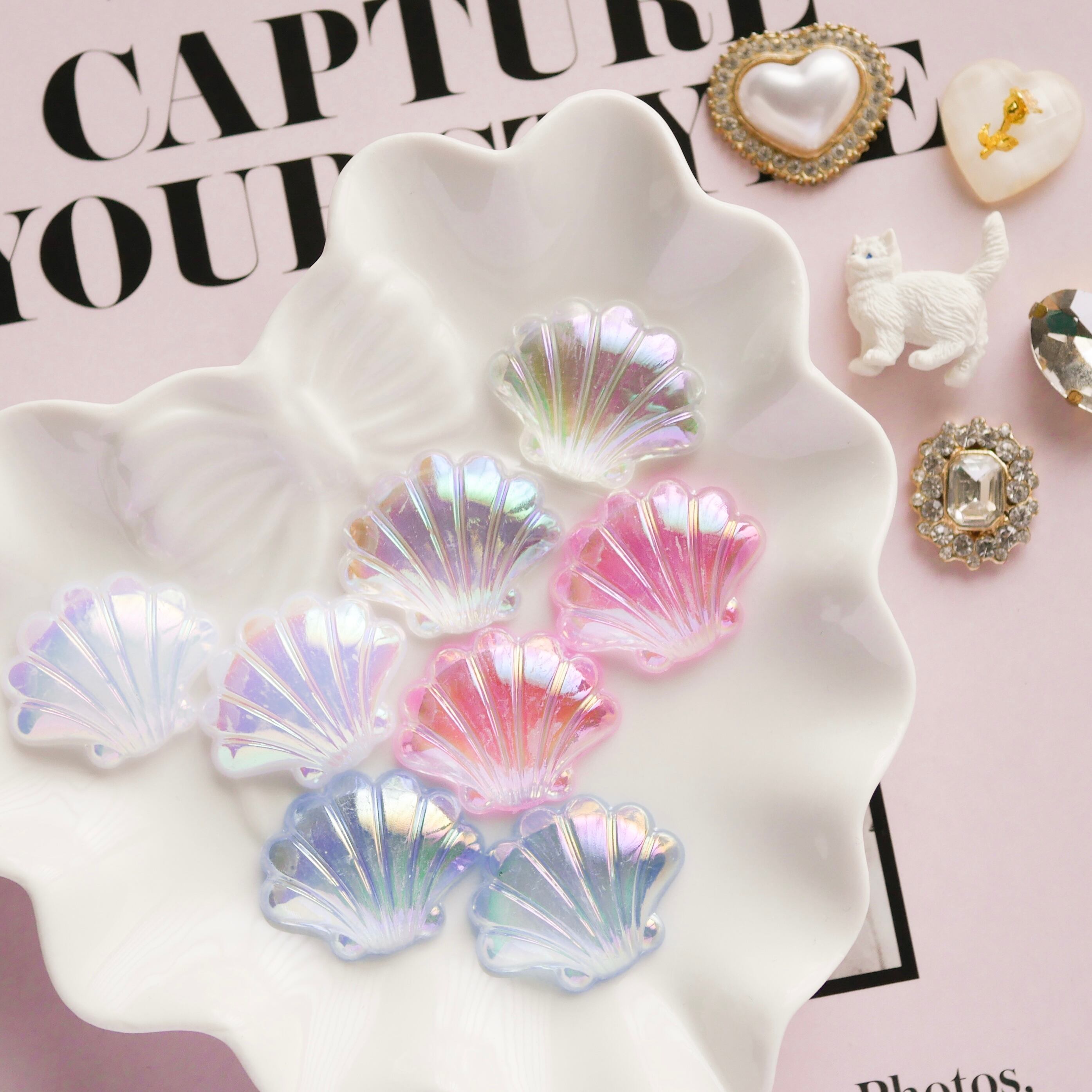 《4color SET》クリアオーロラ・シェルモチーフアクリルカボション/4color×4個
