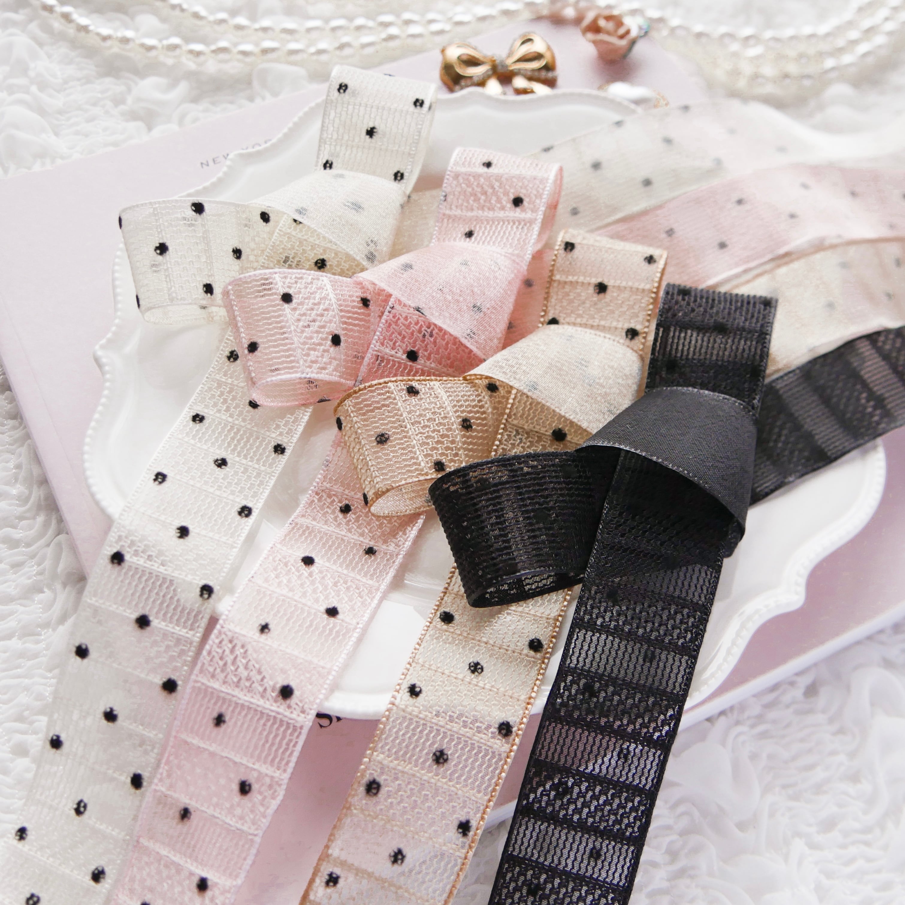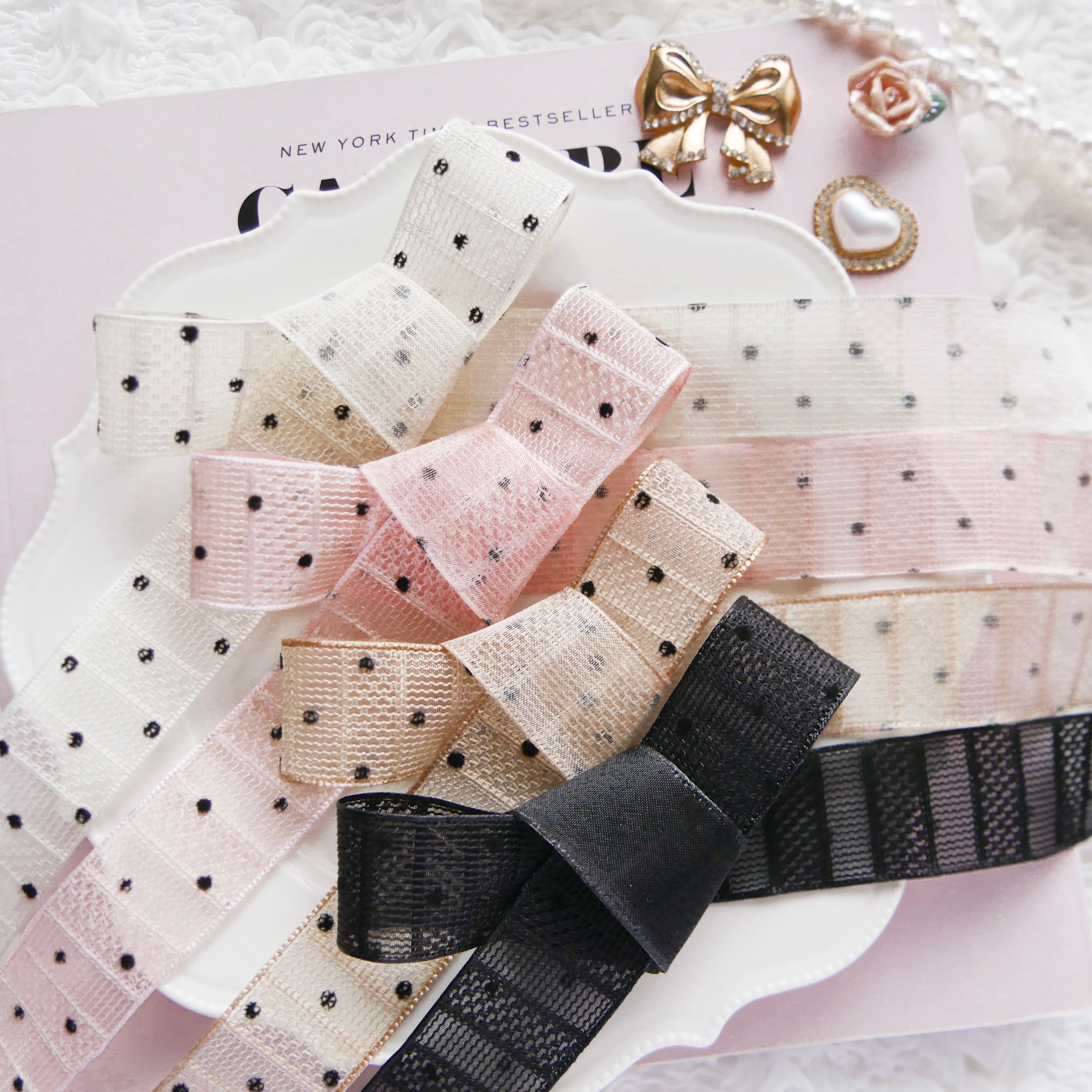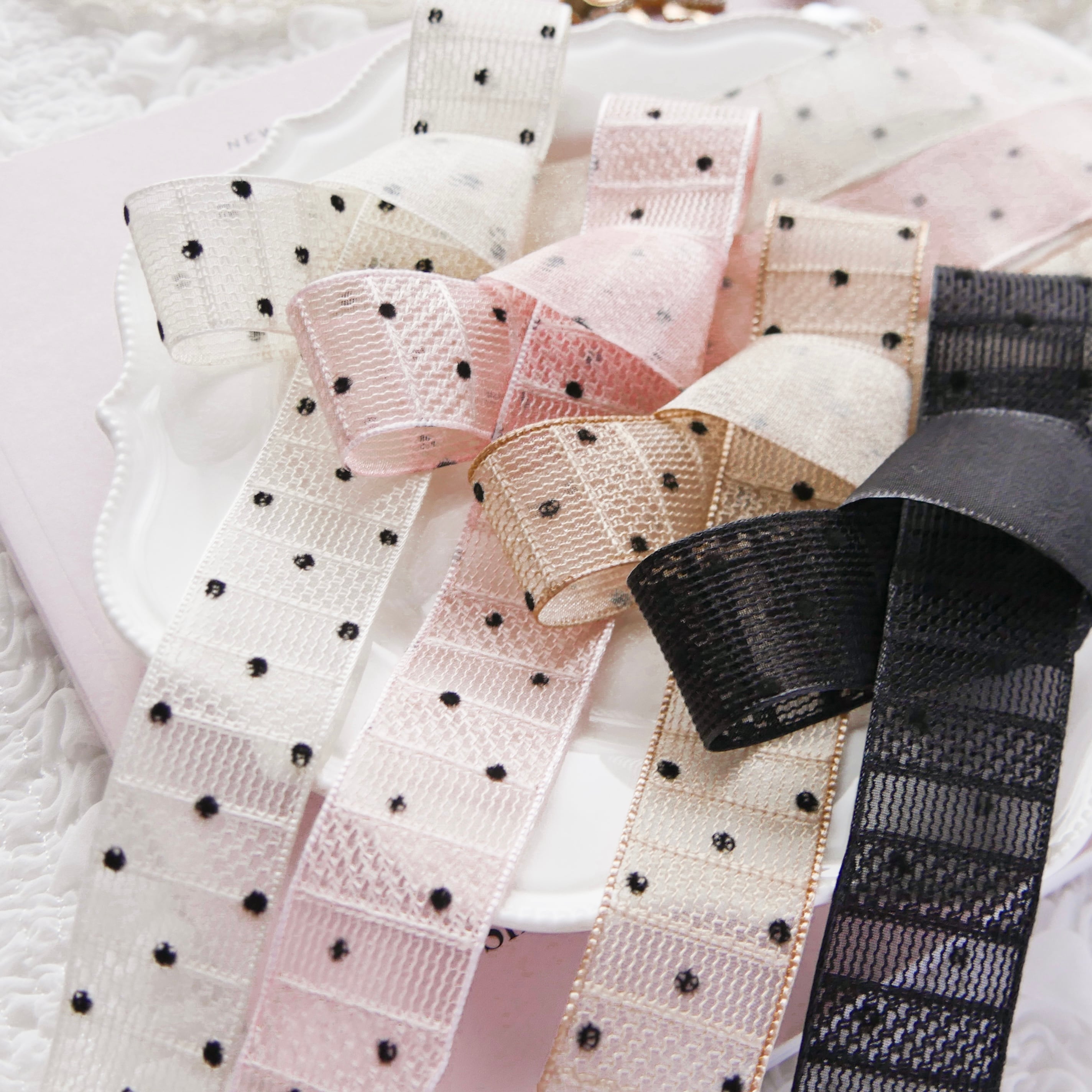 ♡ガーリーなドット柄のフロッキープリントのリボンテープ♡