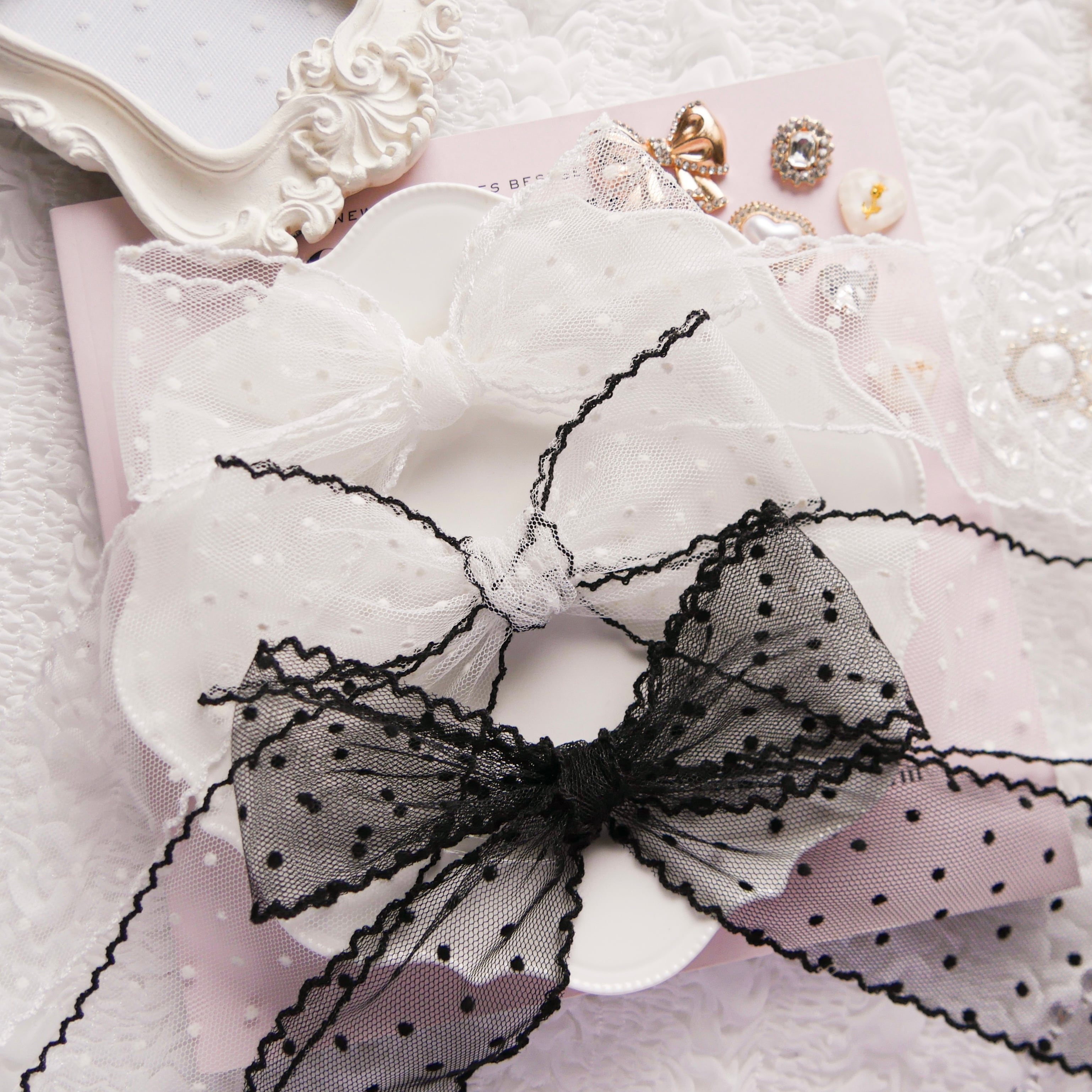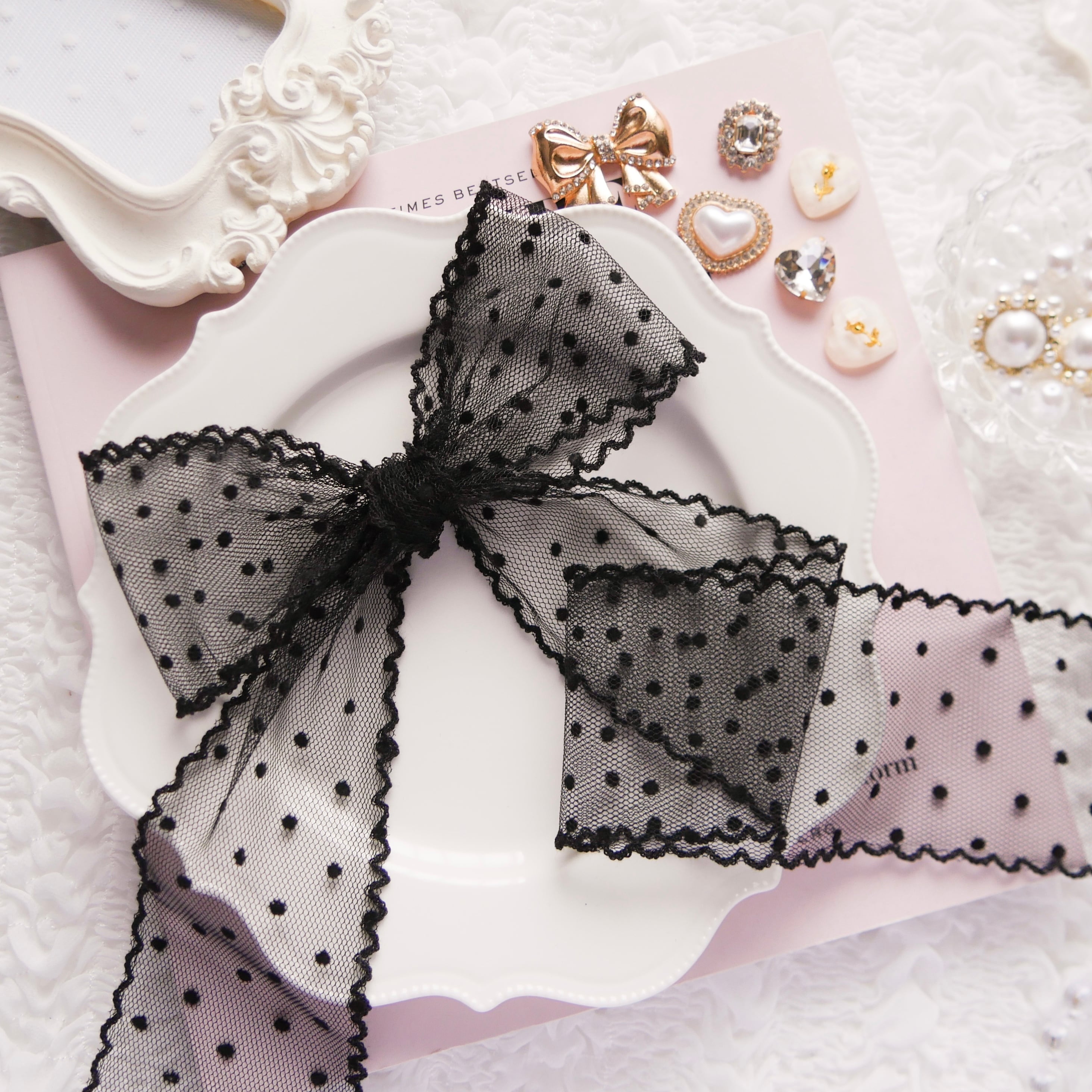 ドットのフロッキープリントがかわいいガーリーなチュールレース