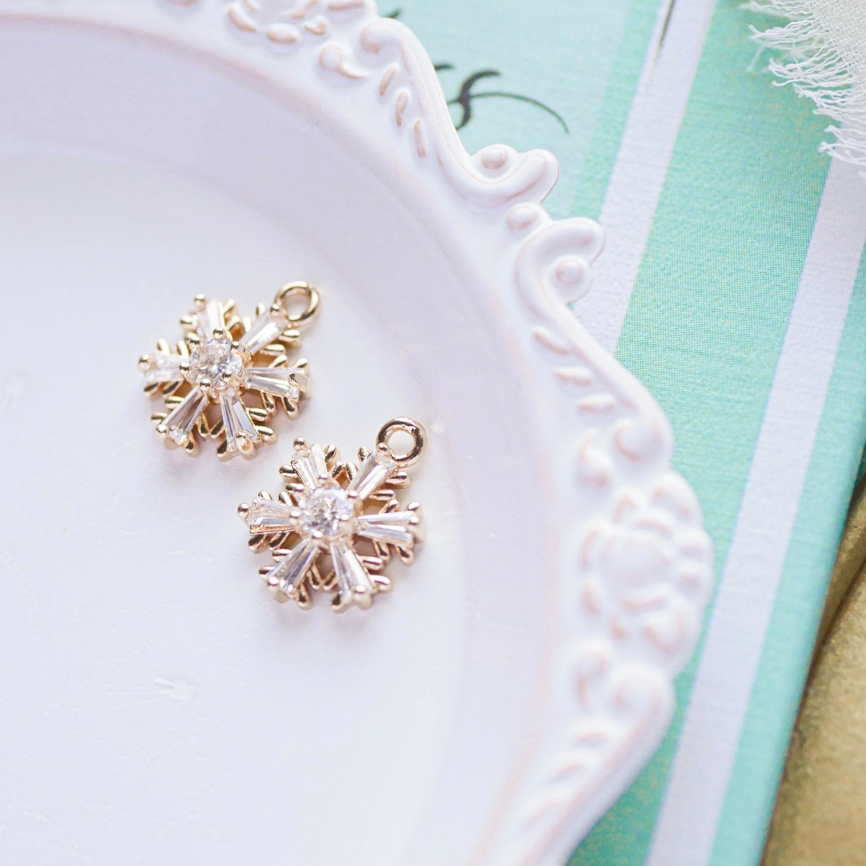 18Kクリスタルジルコニアストーン・スノーフレークチャーム/2個 CM-214