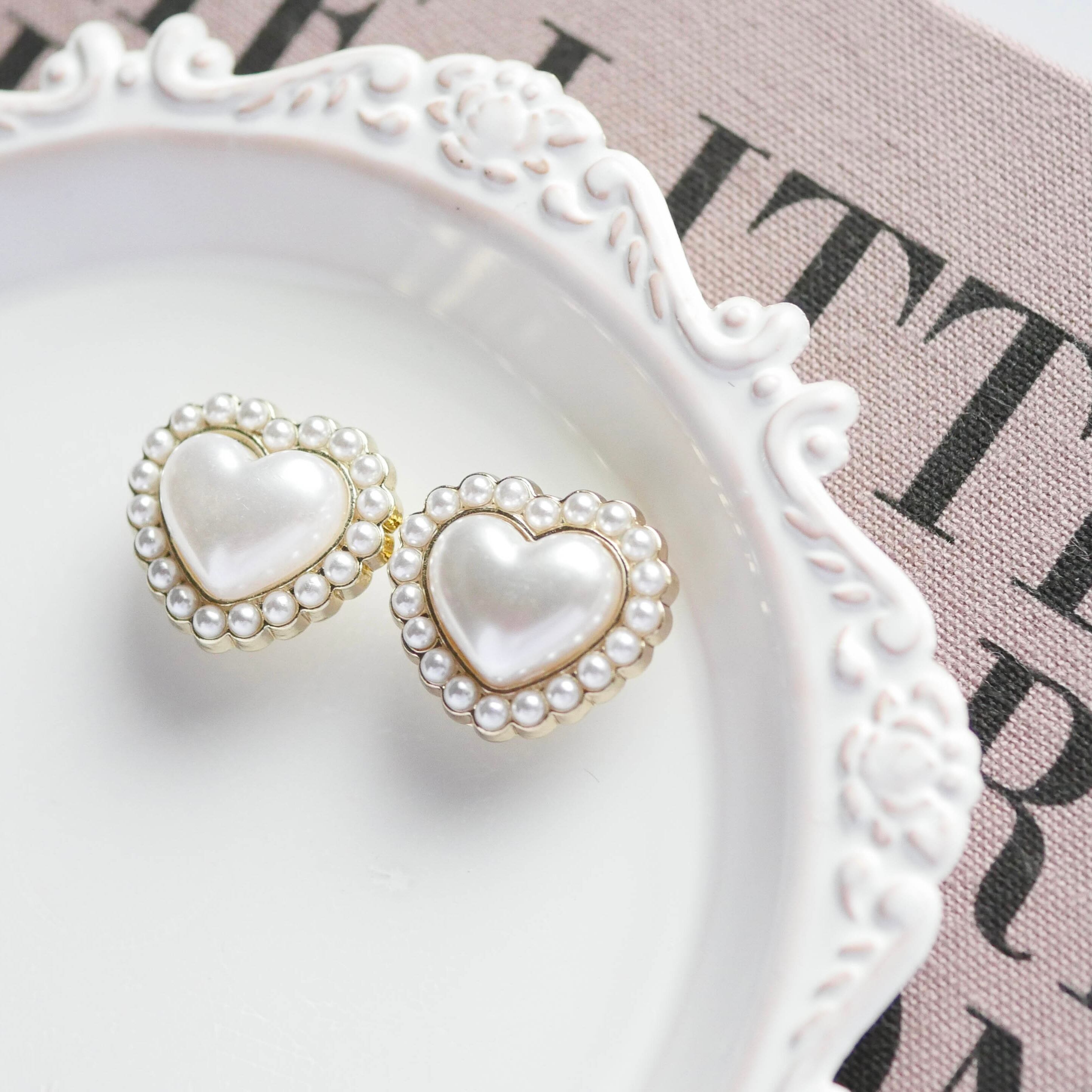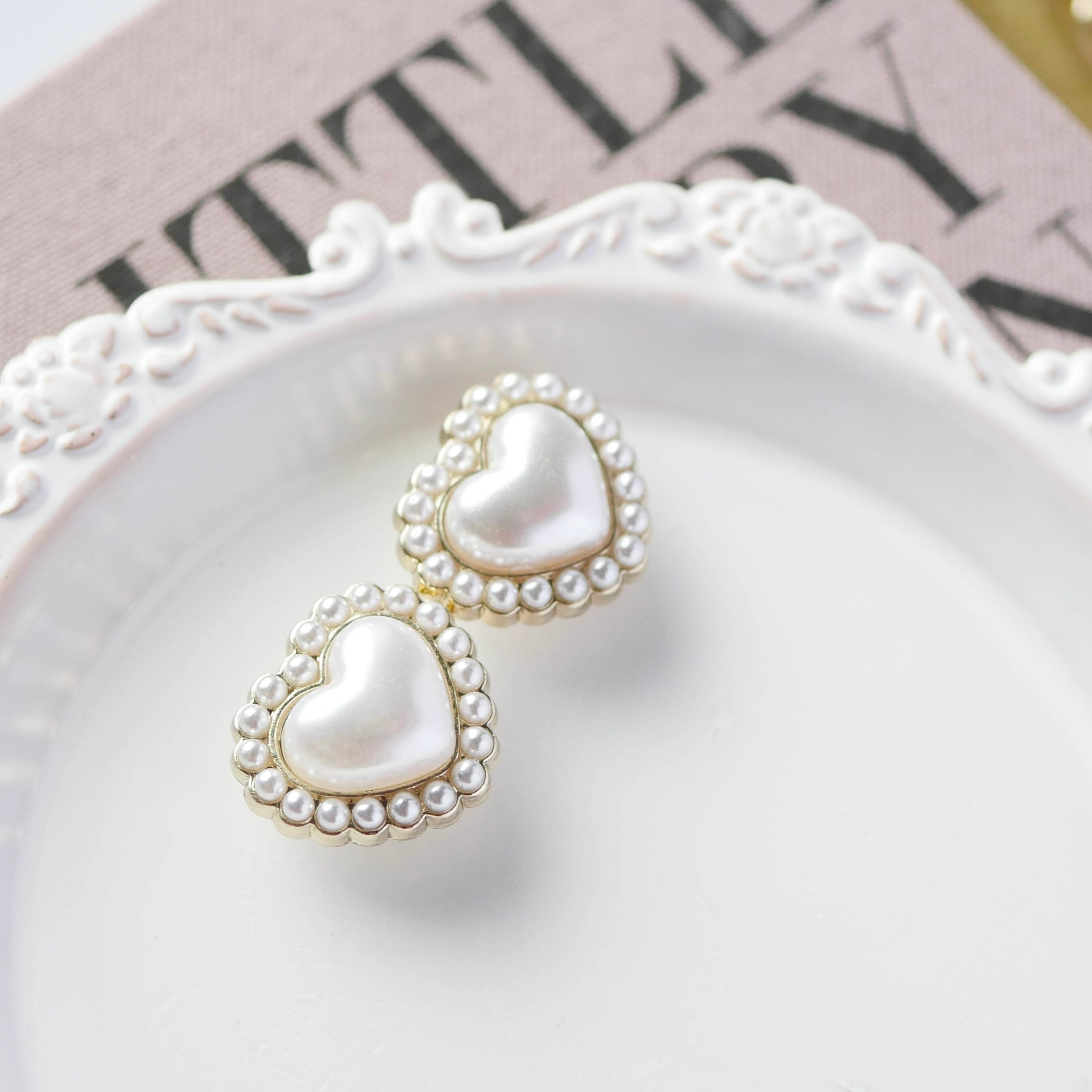 ボタン ハート パール カボション アンティーク ヴィンテージ 春 夏 秋 冬 大人 大人かわいい ガーリー クラシック レトロ カジュアル センターパーツ ピアスパーツ イヤリングパーツ COCONEL ここねる ココネル