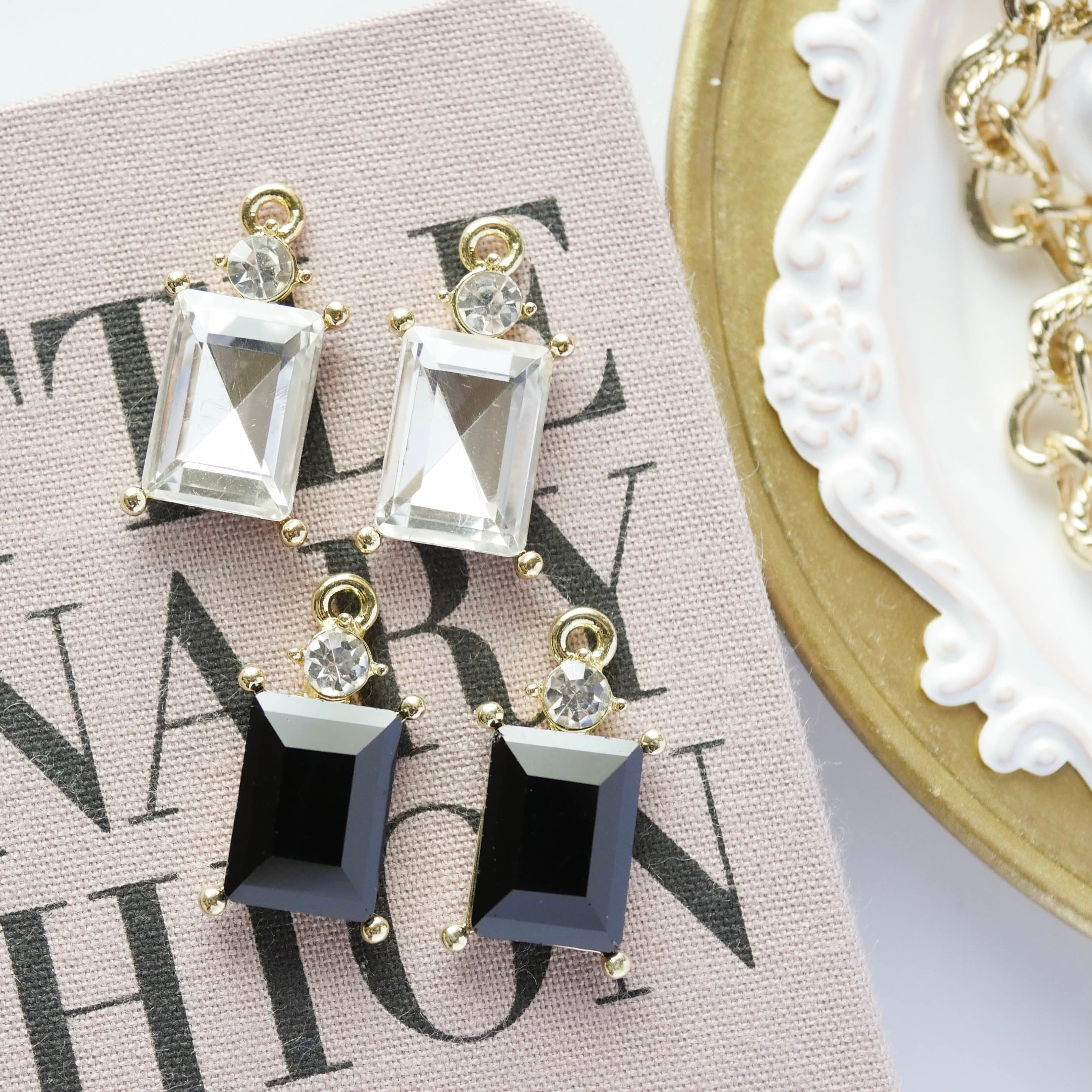 長方形 四角 ガラス ストーン クリスタル チャーム レトロ クラシック カジュアル フォーマル 大人 COCONEL ココネル ここねる