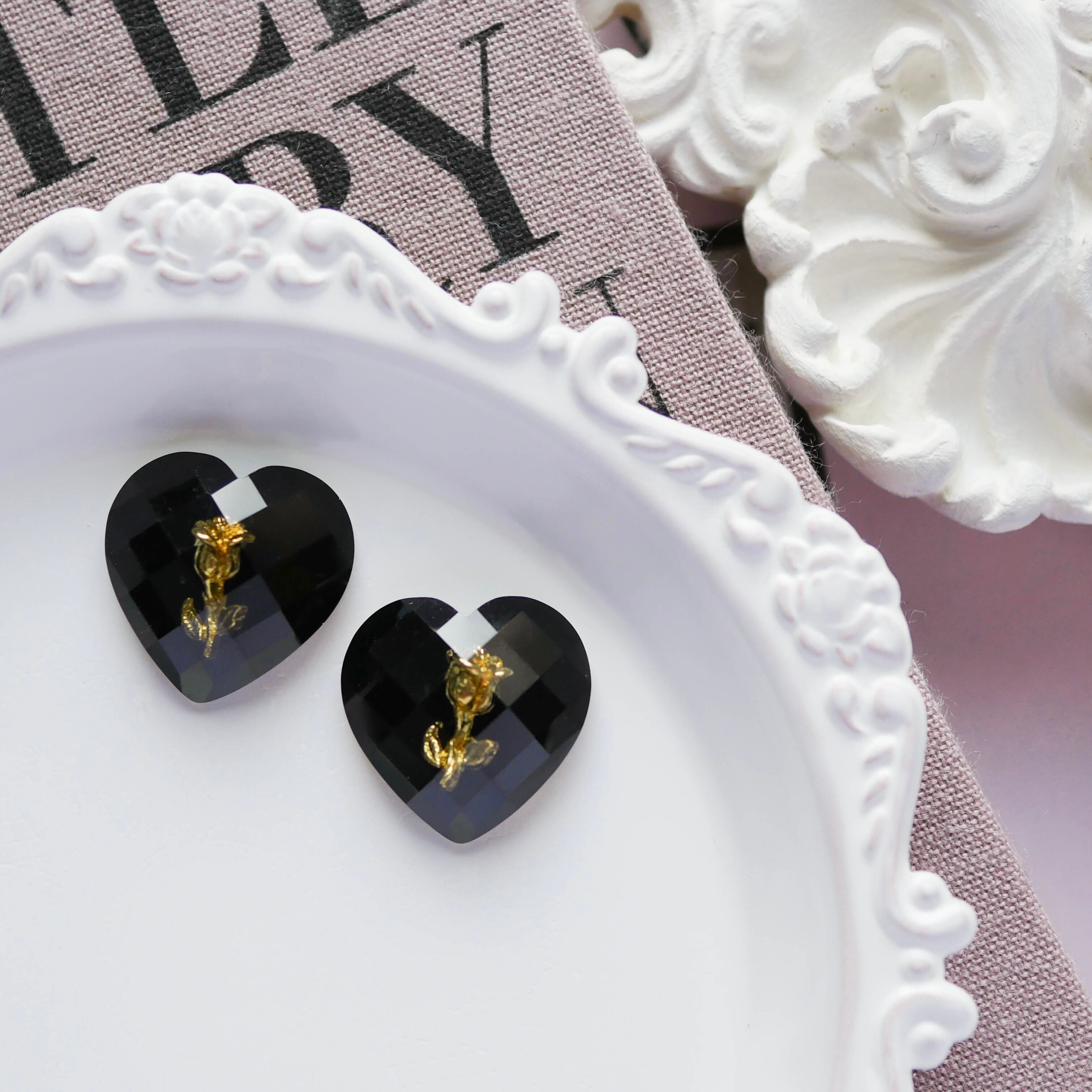 ゴールドの薔薇パーツを閉じ込めたハートカボション