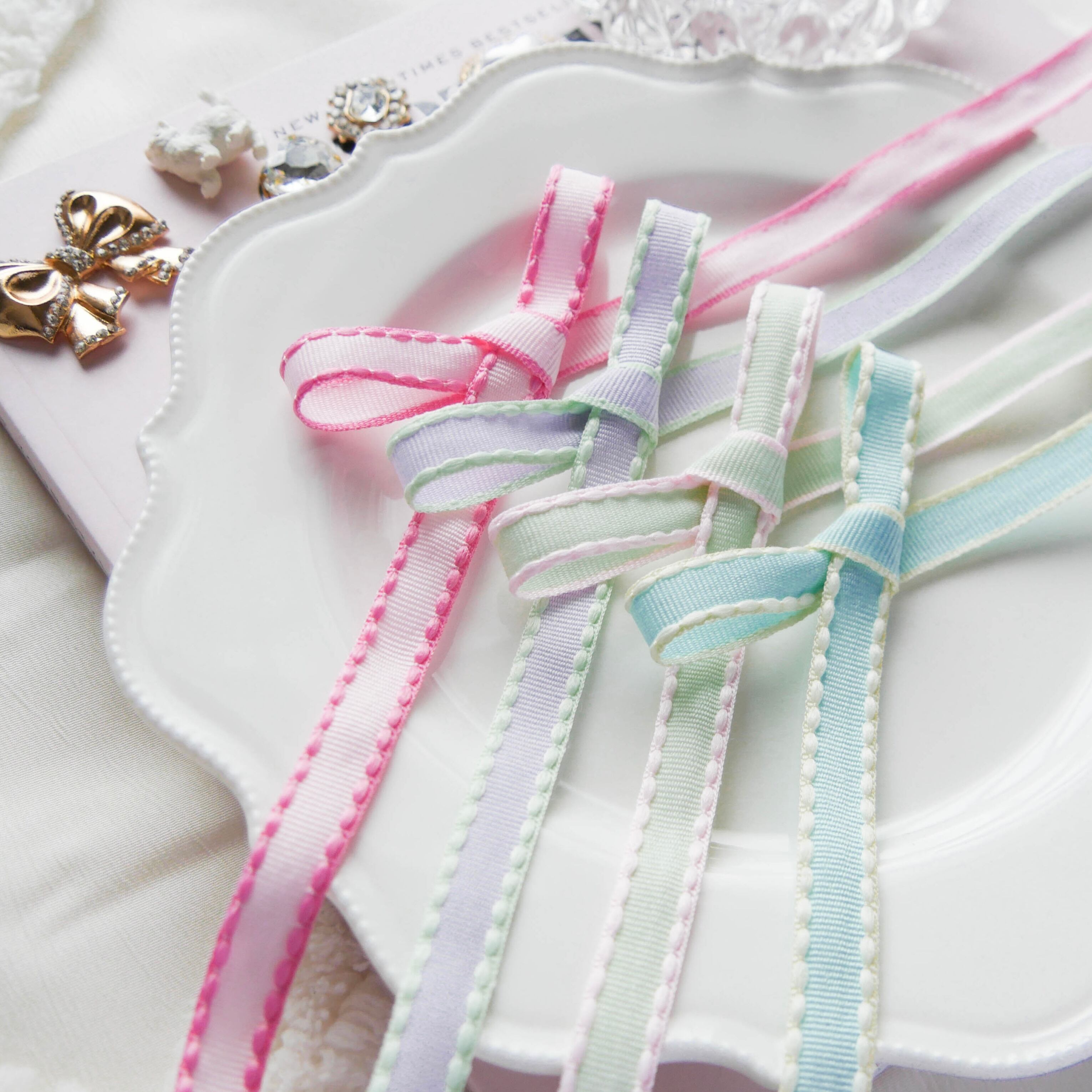 使いやすい細幅とぽこぽことした刺繍の立体感も魅力です♡