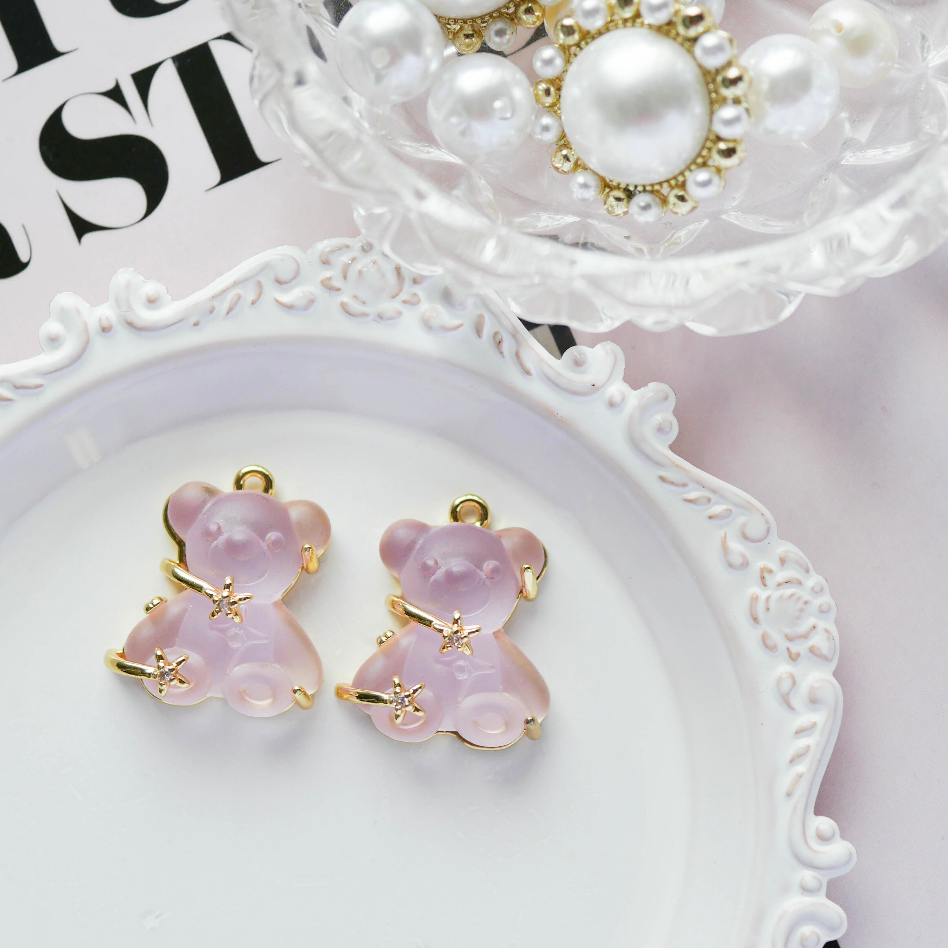 半透明樹脂のくまちゃんとクリスタルラインストーンの