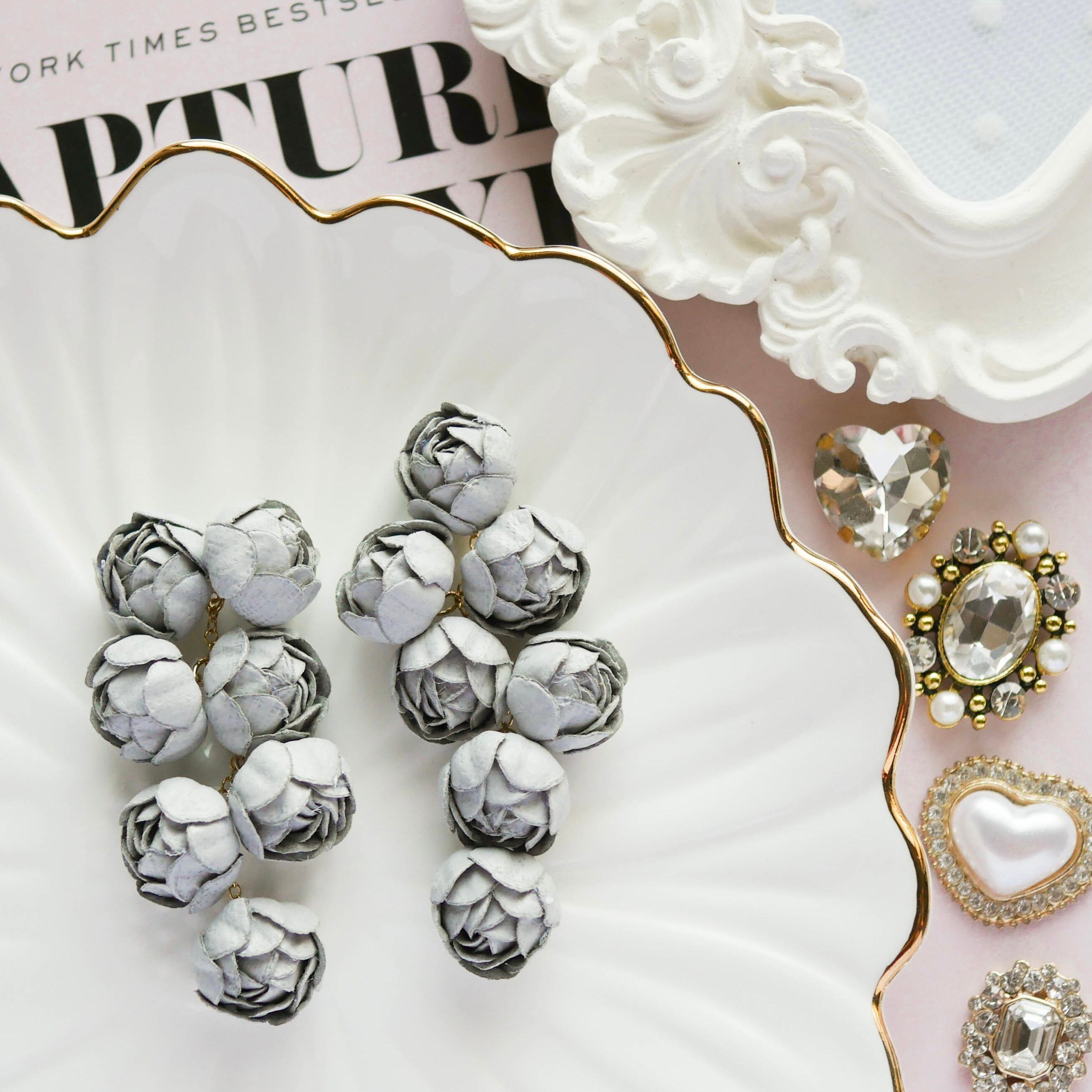 《グレー》ボリュームロング・フラワーモチーフチャーム/2個
