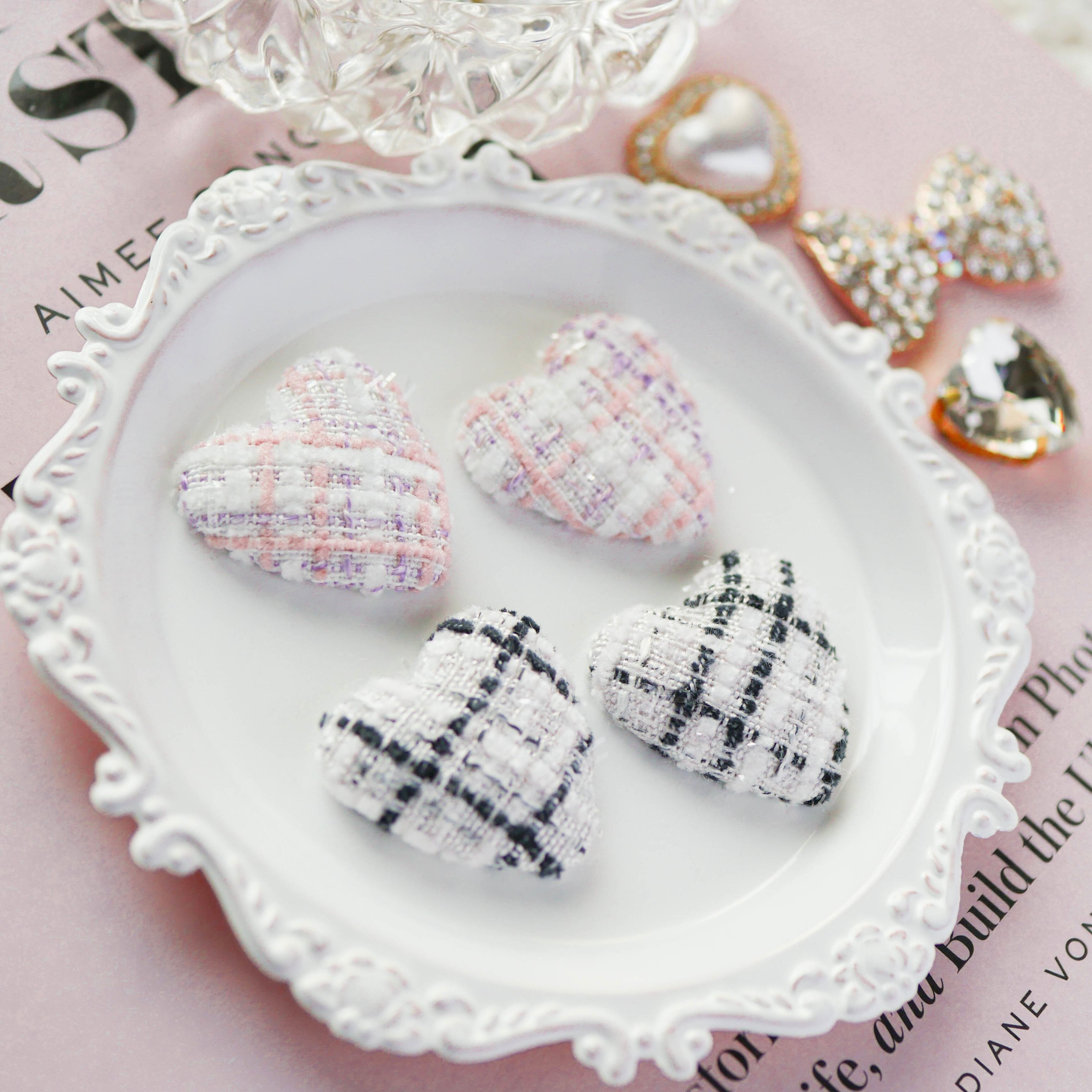 ツイード チェック ハート 秋 冬 ガーリー あったか もこもこ カボション デコパーツ COCONEL ココネル ここねる