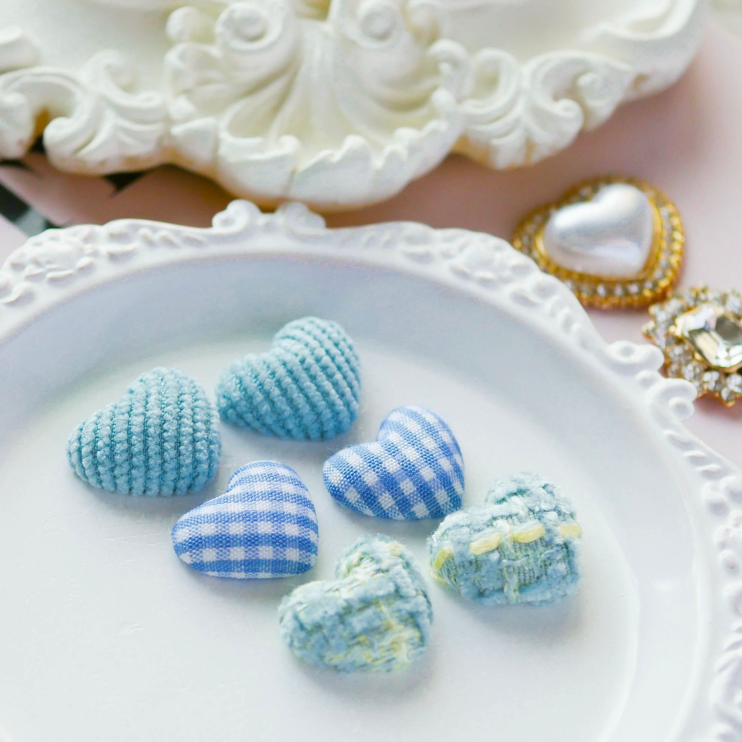 《blue》カラーで揃えたハート型カボションパーツになります。