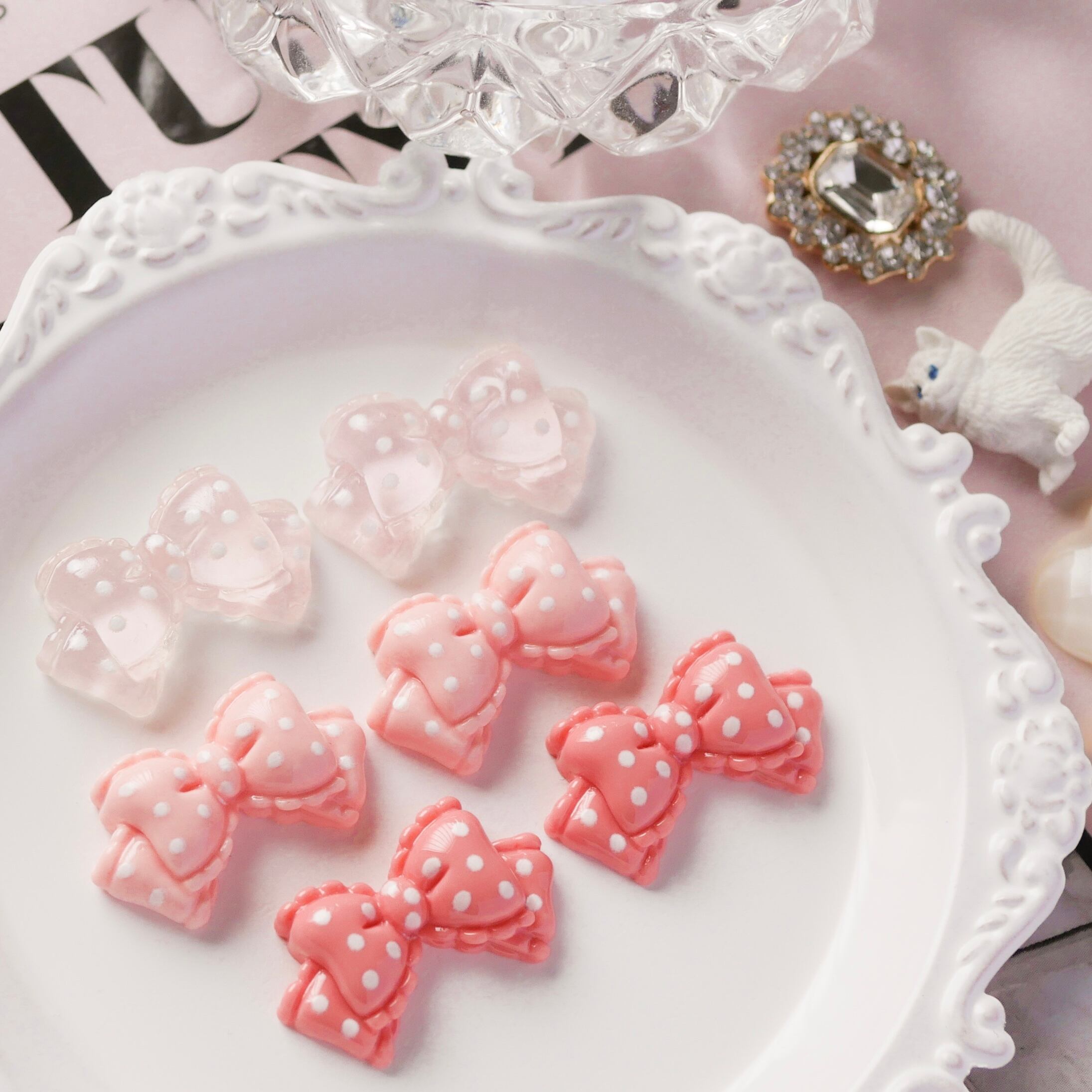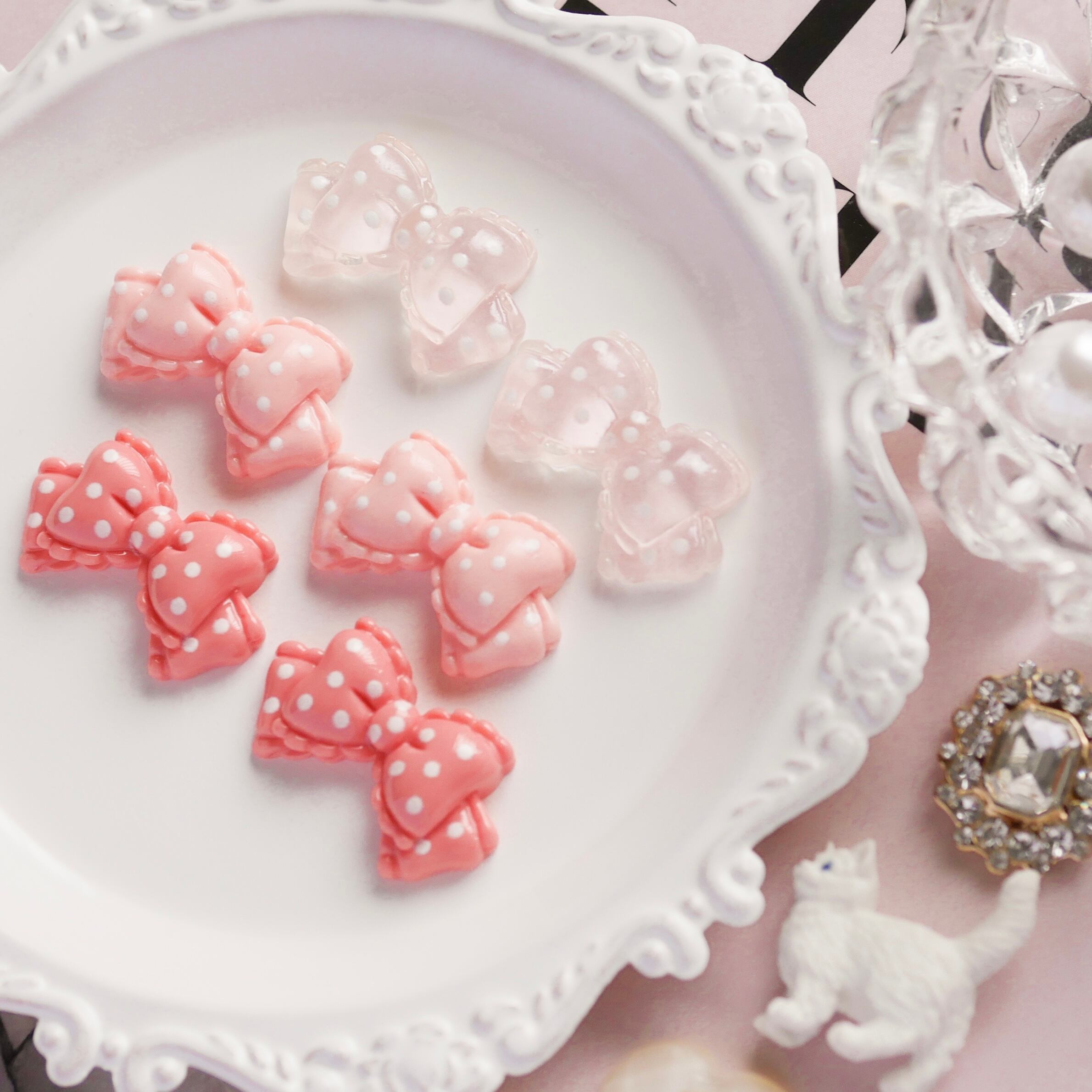 リボン 水玉 デコパーツ アクリル カボション