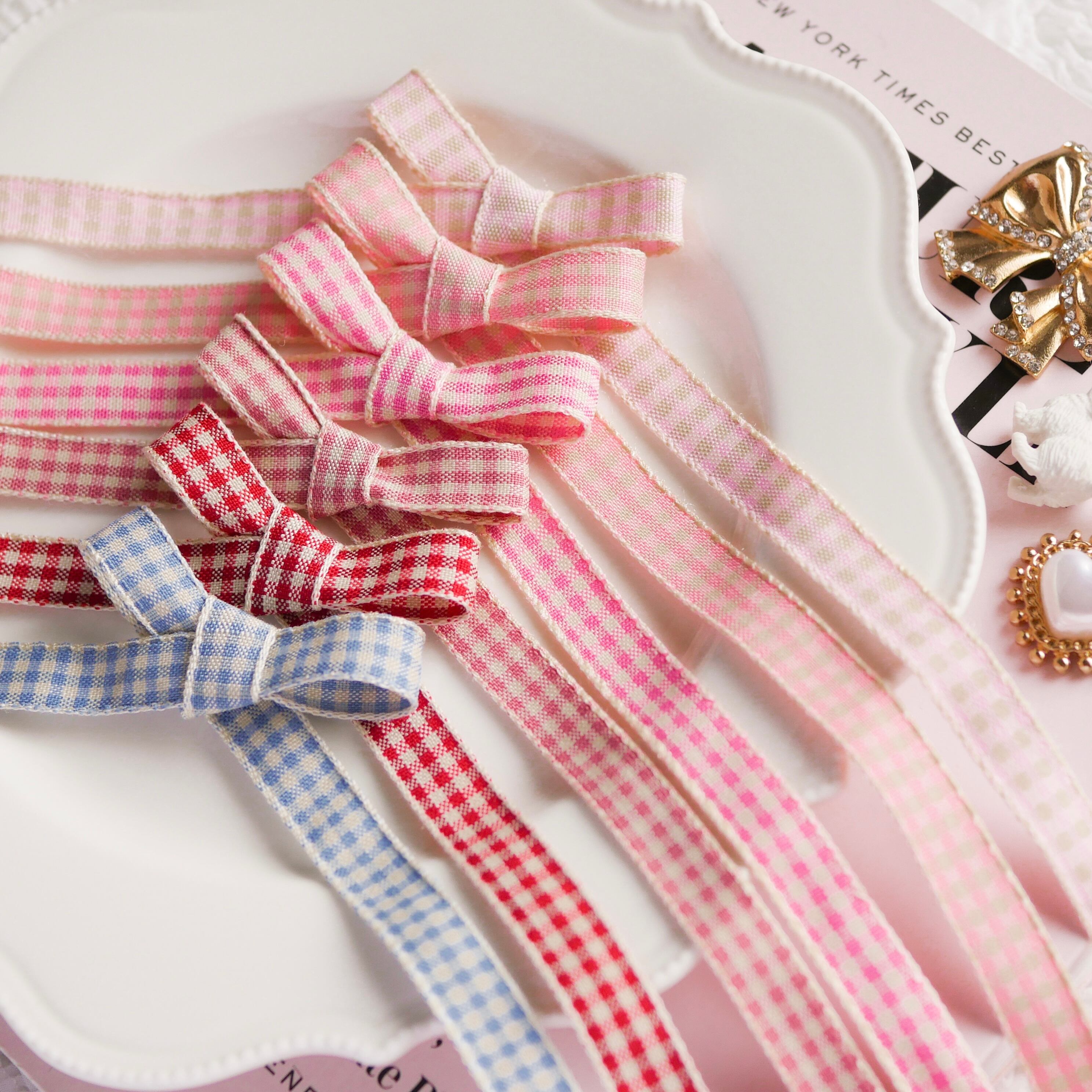リボン テープ チェック ギンガム ヘアゴム カチューシャ クラシカル 親子 キッズアクセ 親子リンク 親子コーデ ブルー レッド ブラック 黒 春 夏 秋 冬 細幅