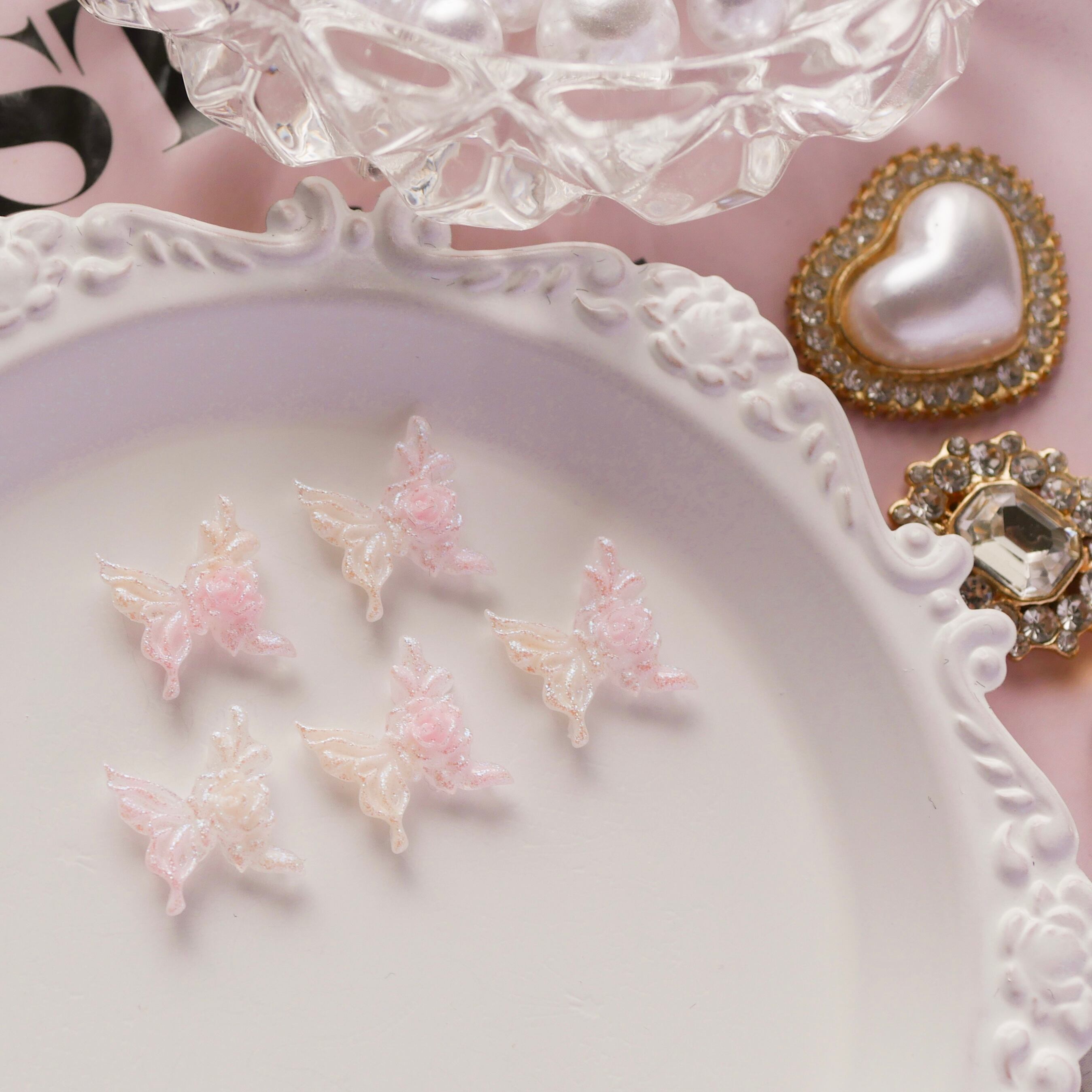 ロマンティックシャイニーローズ&バタフライミニパーツ/ネイルパーツ/6個