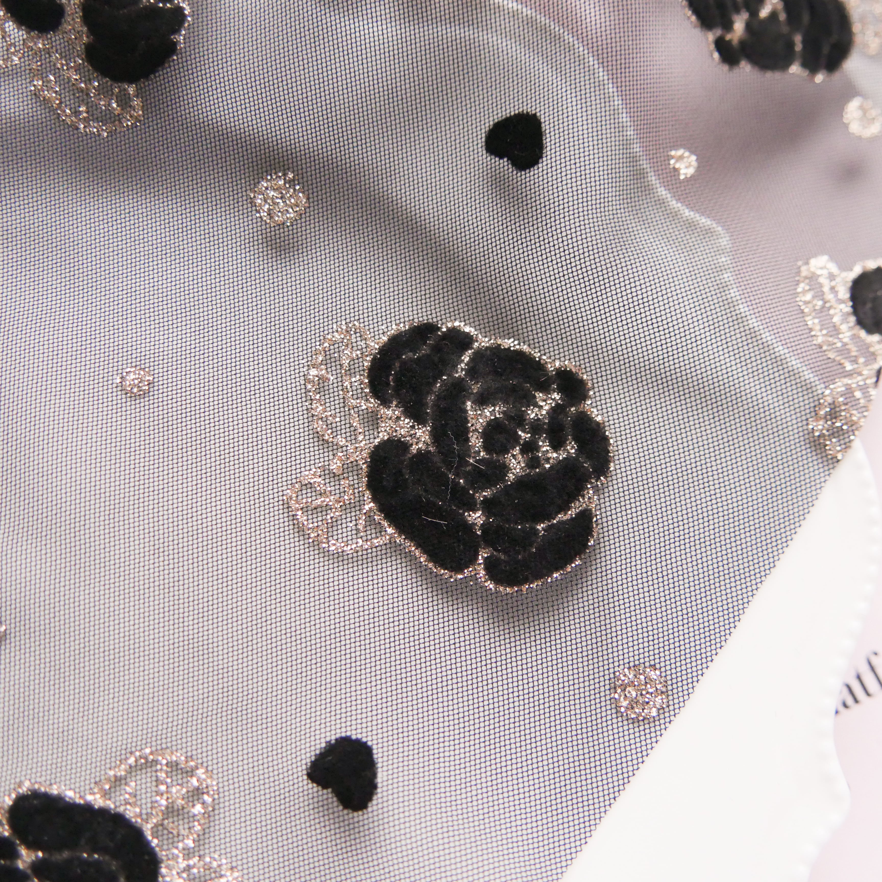 レース チュール プリント フロッキー 起毛 ラメ 薔薇 花柄